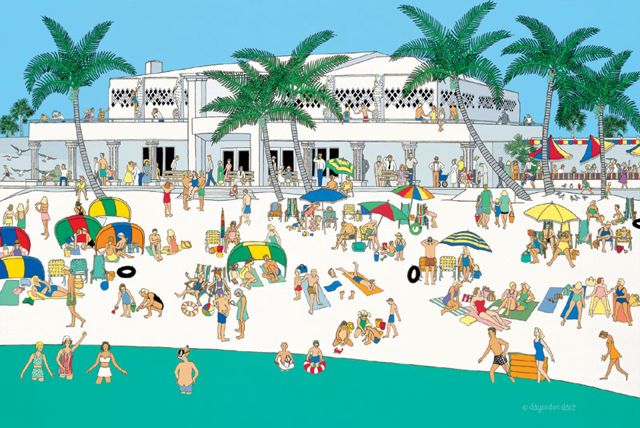 A landmark lost – dependent on photographs, paintings and writings to be remembered. The Lido Casino was designed by architect Ralph Twitchell and built as a WPA project.  It opened in 1940 and was demolished just 29 years later in 1969.  The iconic eight foot tall concrete sea horses are the most remembered architectural detail of the building.