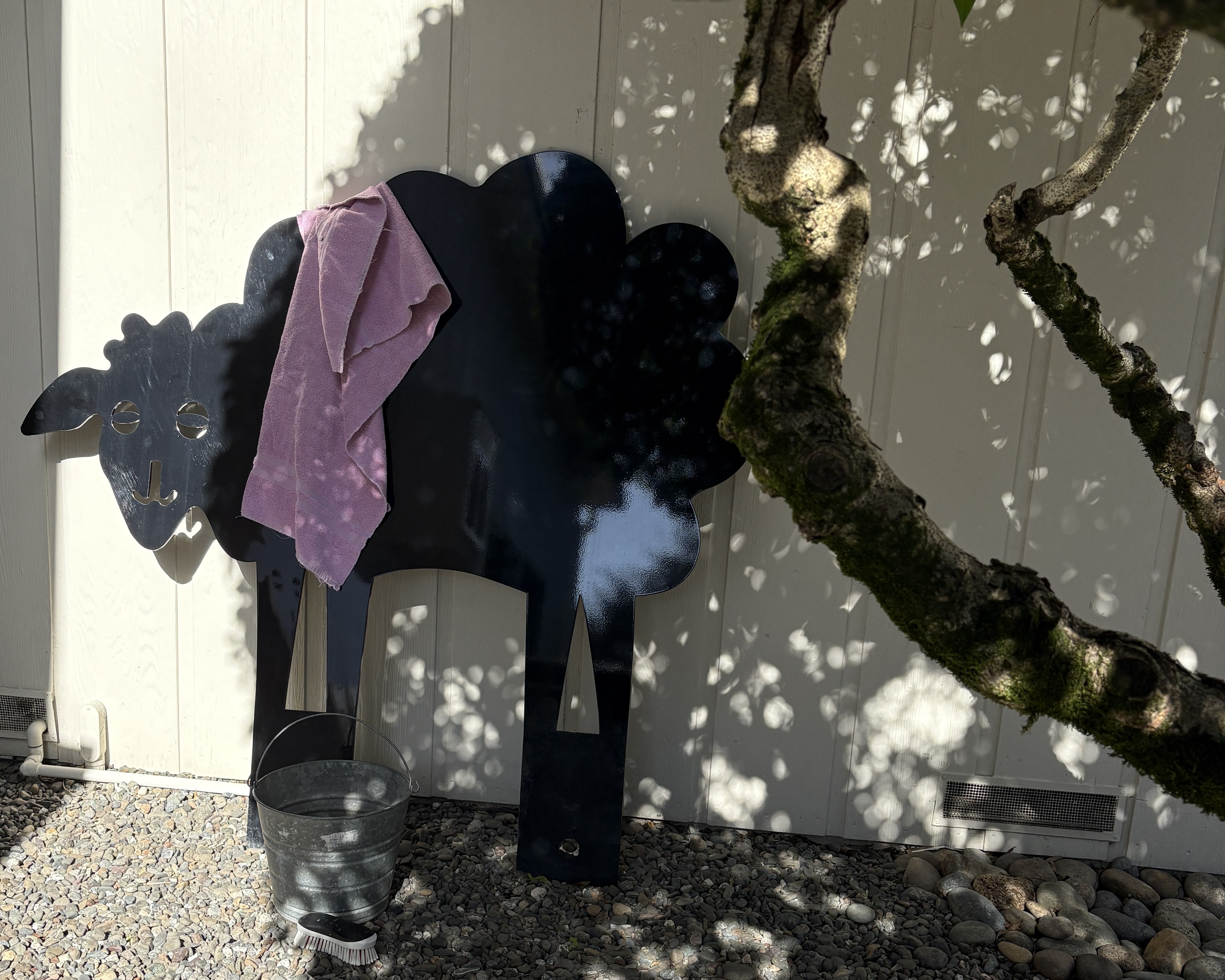 The Sheeeep! are back at the studio for some much needed baths and R&R before heading back to pasture. Huntley & Brinkley have weathered 3+ years in the field. Aside from being really, really dirty they have held up beautifully. Powder-coating is an amazing finish!