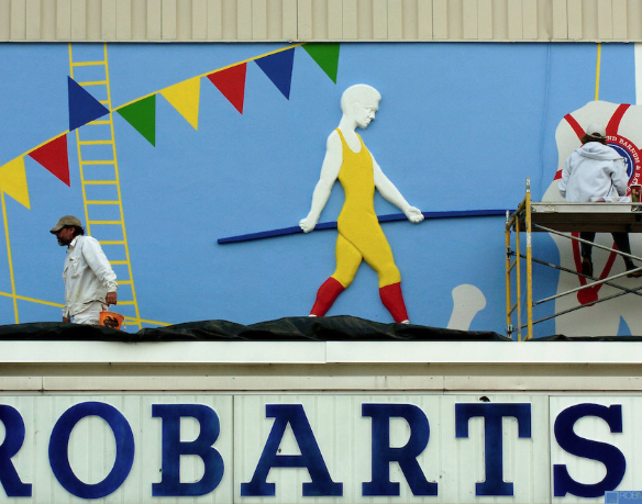 Commission to design and create a temporary mural on the facade of the Robarts Sports Arena in Sarasota, Florida to welcome the return of the Ringling Bros. and Barnum Bailey Circus.