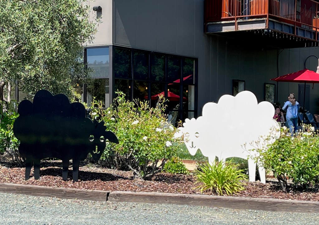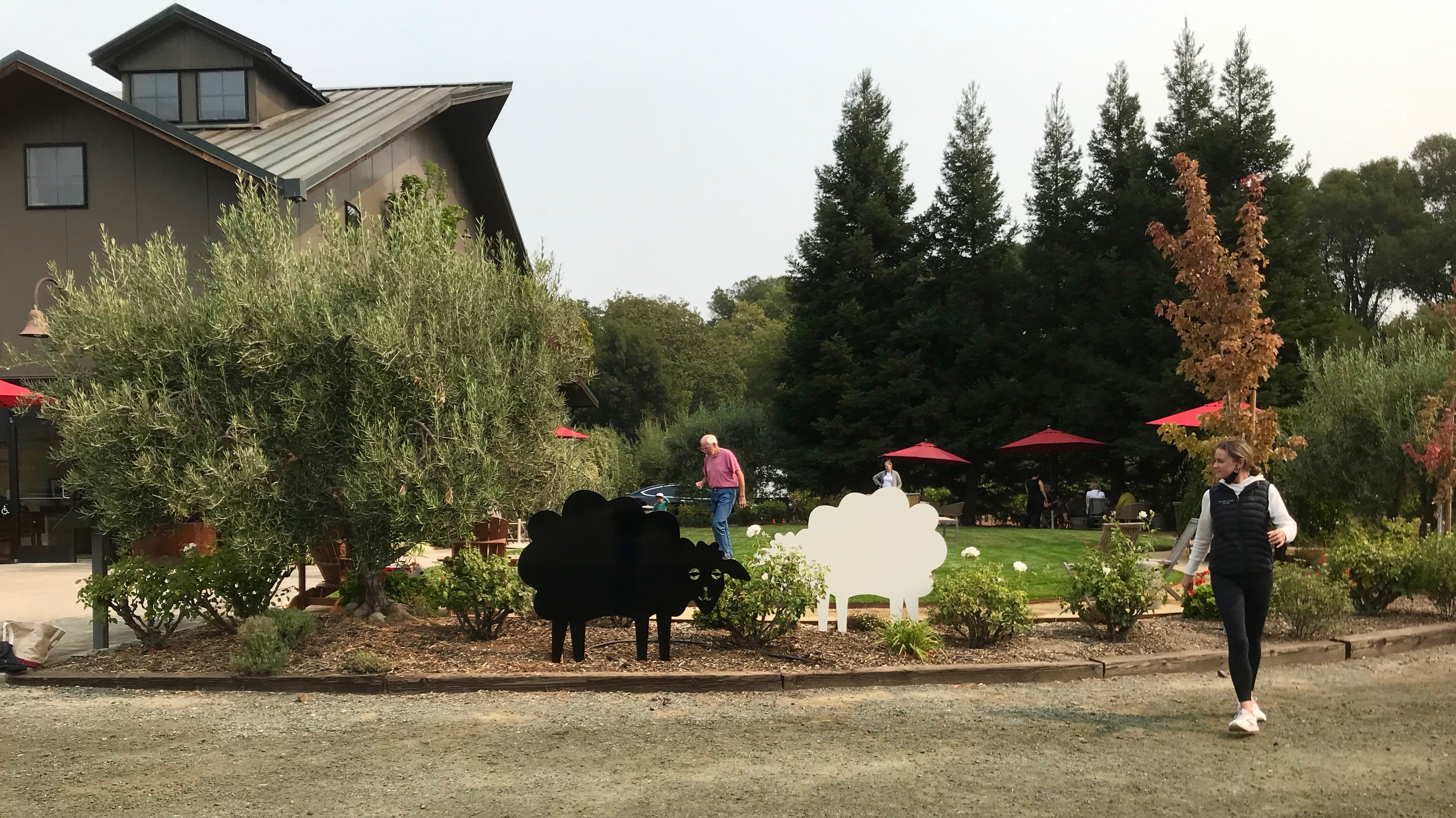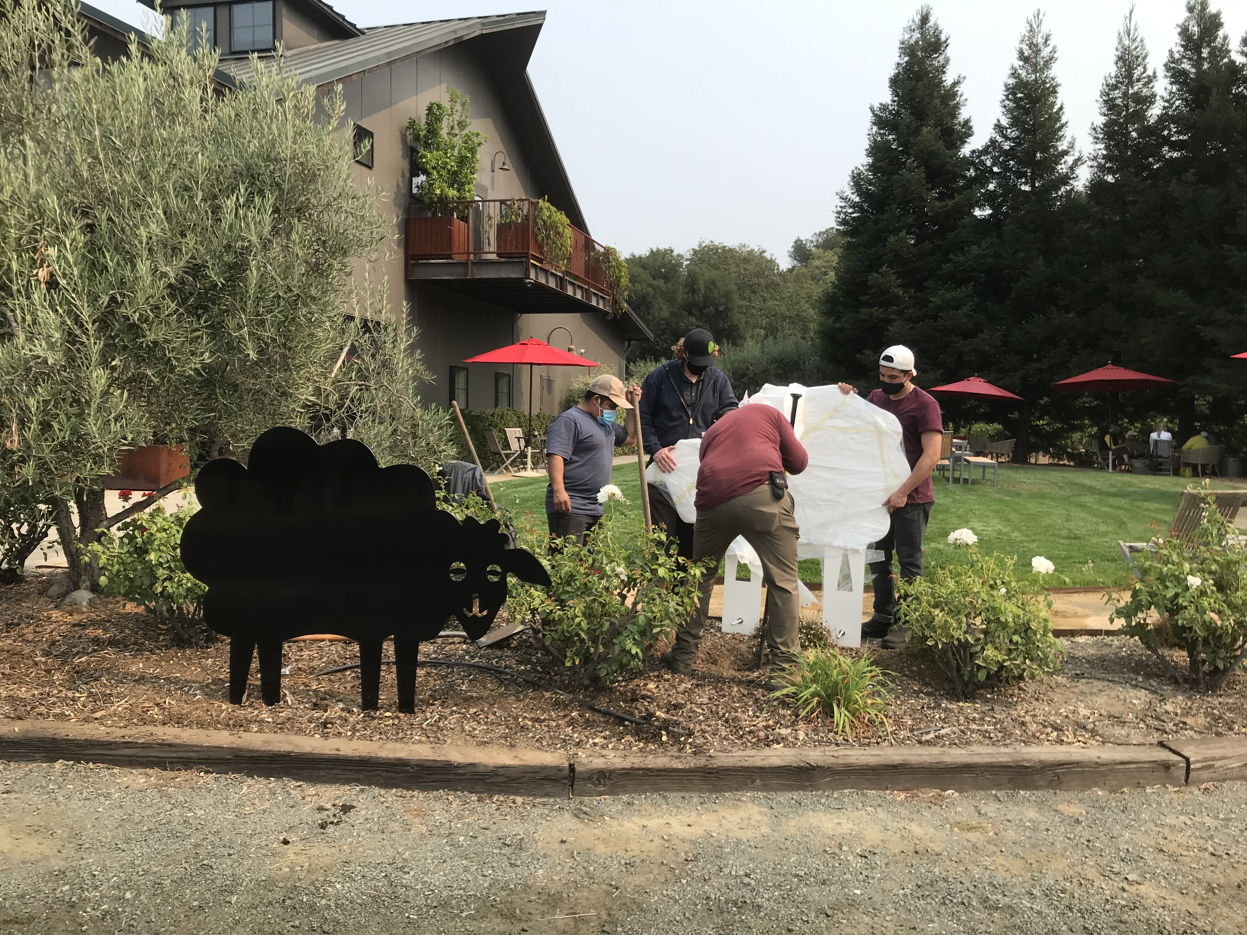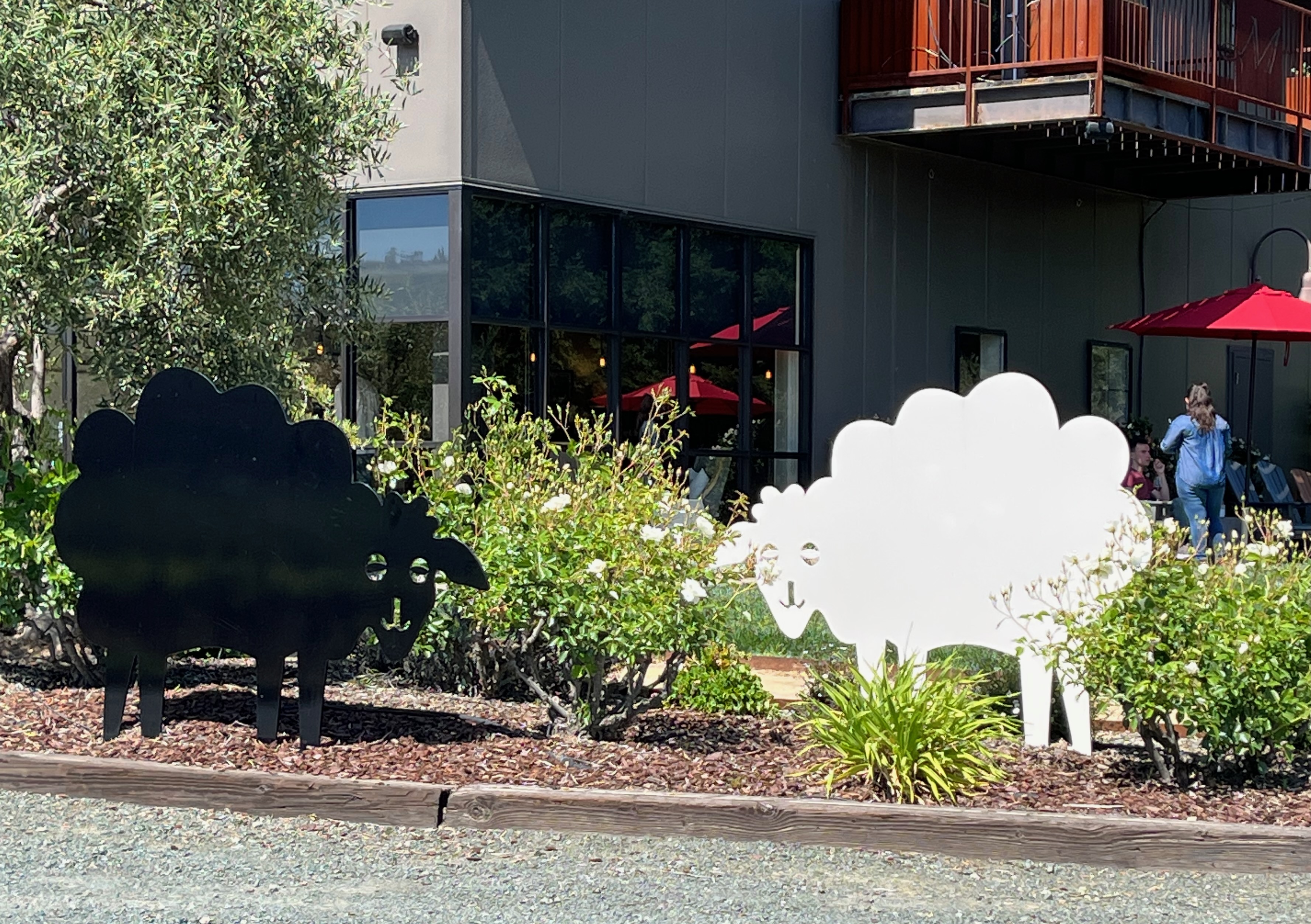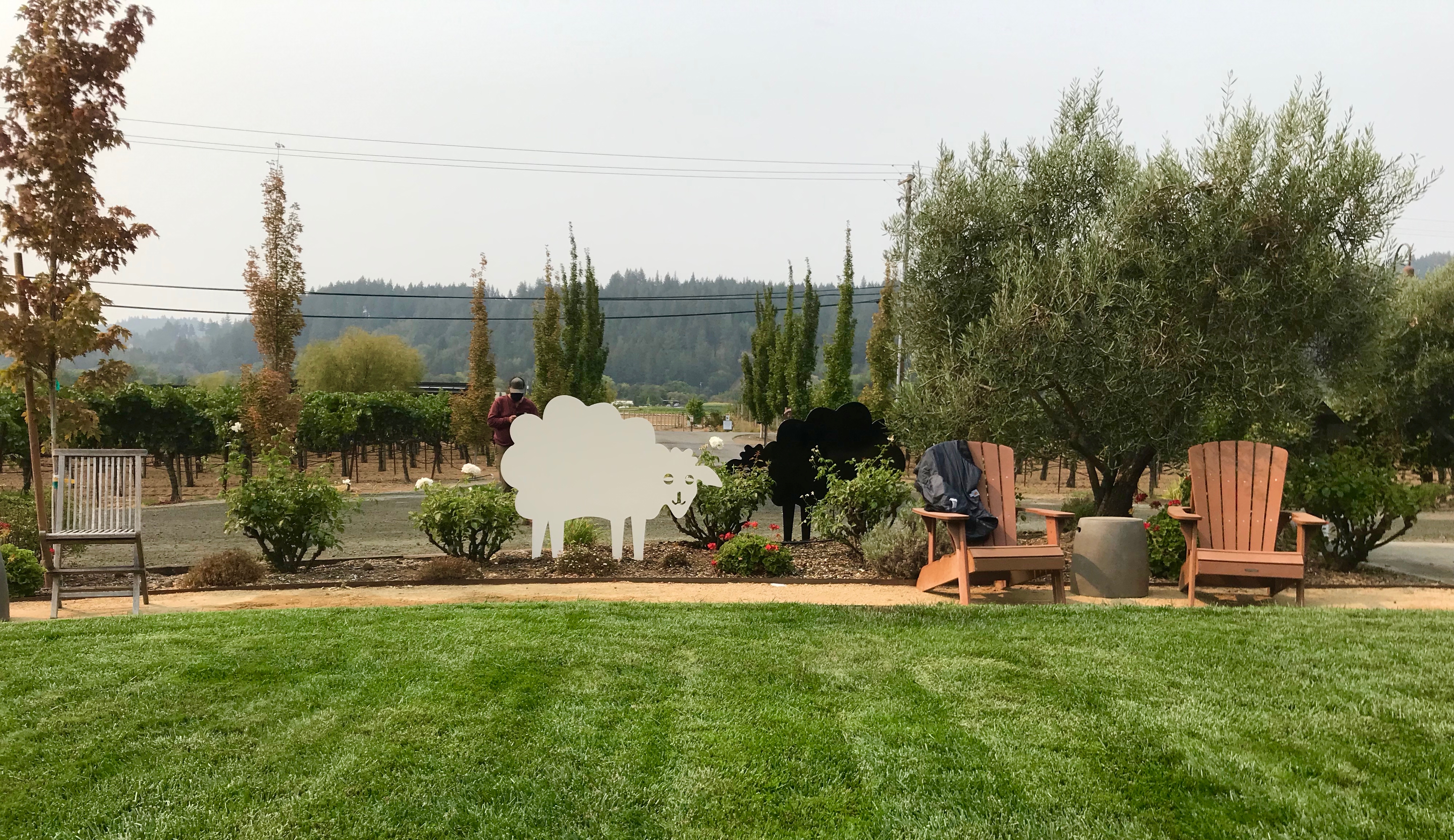 “Huntley & Brinkley” lead off a new series of sculptures – The SHEEEEP! These irresistible, happy guys were welcomed by the Mauritson Winery owners and staff just in time for the 2021 harvest.