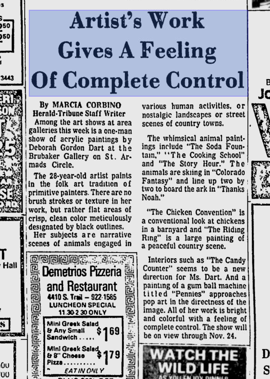 During those years I had a number of one-person shows at Brubaker. I came across this newspaper clipping on Google reviewing one show in November 1979…….