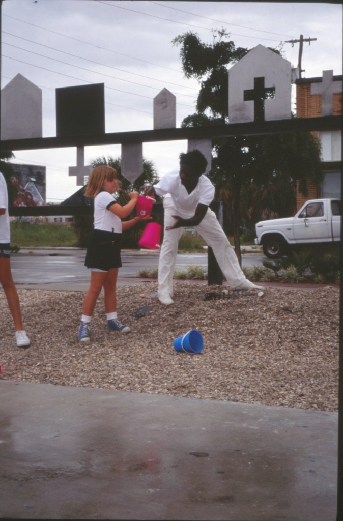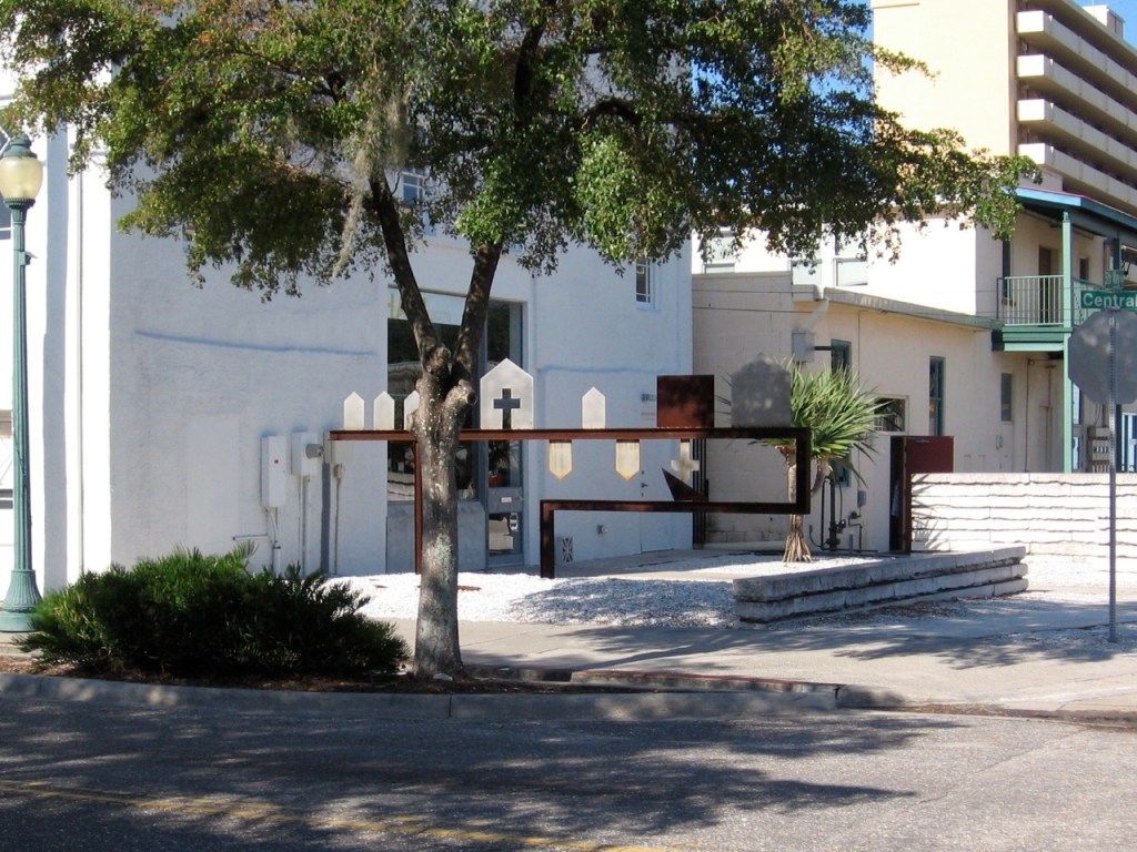 “Community” depicts the evolution of one of Sarasota’s earliest neighborhoods. The area stretching along a high ridge overlooking the bay was settled by African Americans in the late 1800’s. It became known as Black Bottom and was later renamed Overtown. Two churches anchored the community for years. The neighborhood fell into decline and, by the mid 1950’s, the City had demolished most of its houses and buildings. The rehabilitation of the A.M.E. church building in the 1990’s spurred the revitalization of the neighborhood and a new name, The Rosemary District.