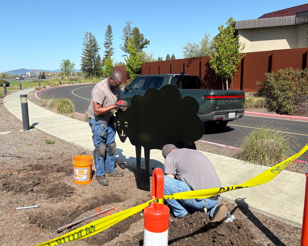 It was a multi day installation. Nothing ever goes quite as smoothly as one would like. This was no exception. Buried pipes were unearthed while digging and had to be reckoned with before proceeding with the installation of Brinkley.